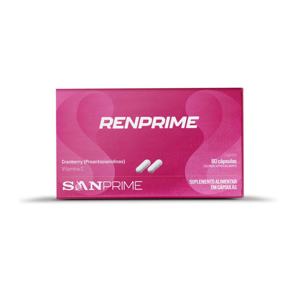 O Renprime é um suplemento alimentar em cápsulas formulado com cranberry em pó e vitamina C.